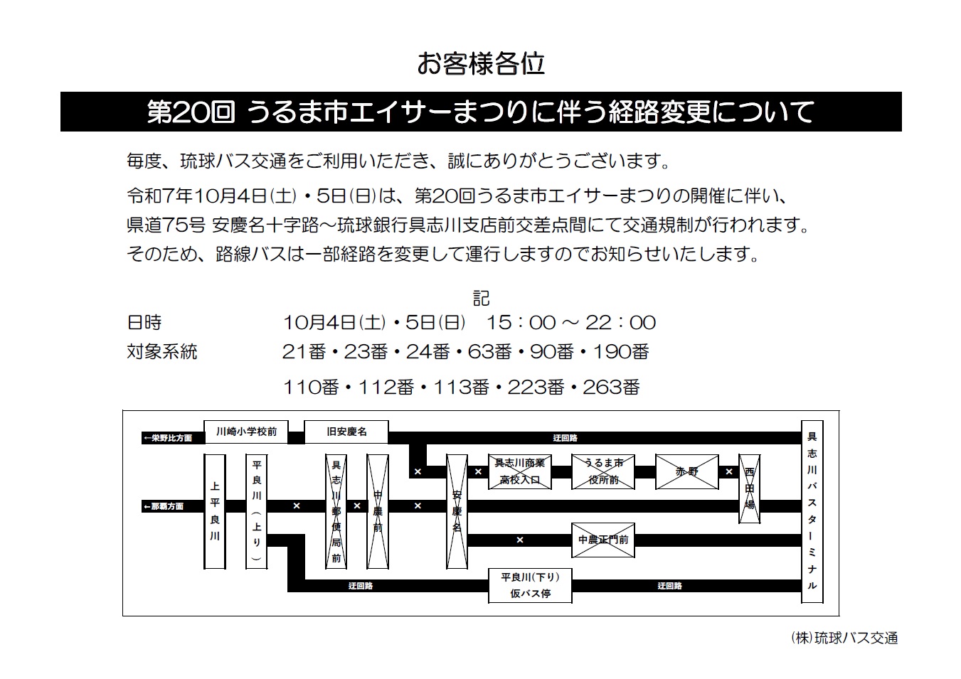 【10月4日・5日】 うるま市エイサー祭り開催による経路変更について
