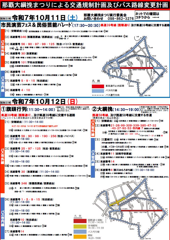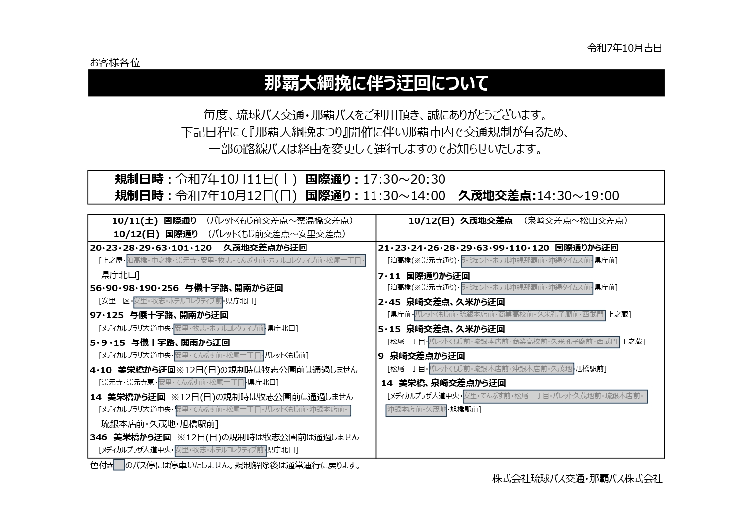 10月11日(土)・12日(日)那覇大綱挽祭り開催に伴うバスの運行について ※10/7修正、10/10画像差替