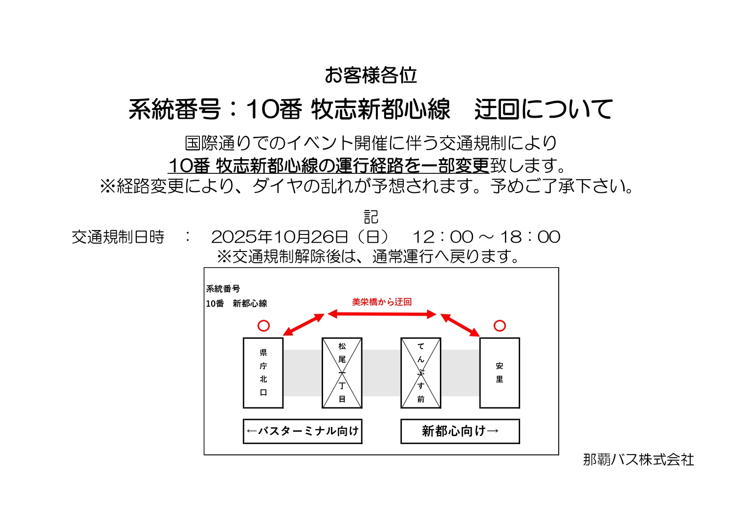 10月26日(日) 『空手の日記念演武祭』に伴う10番迂回について