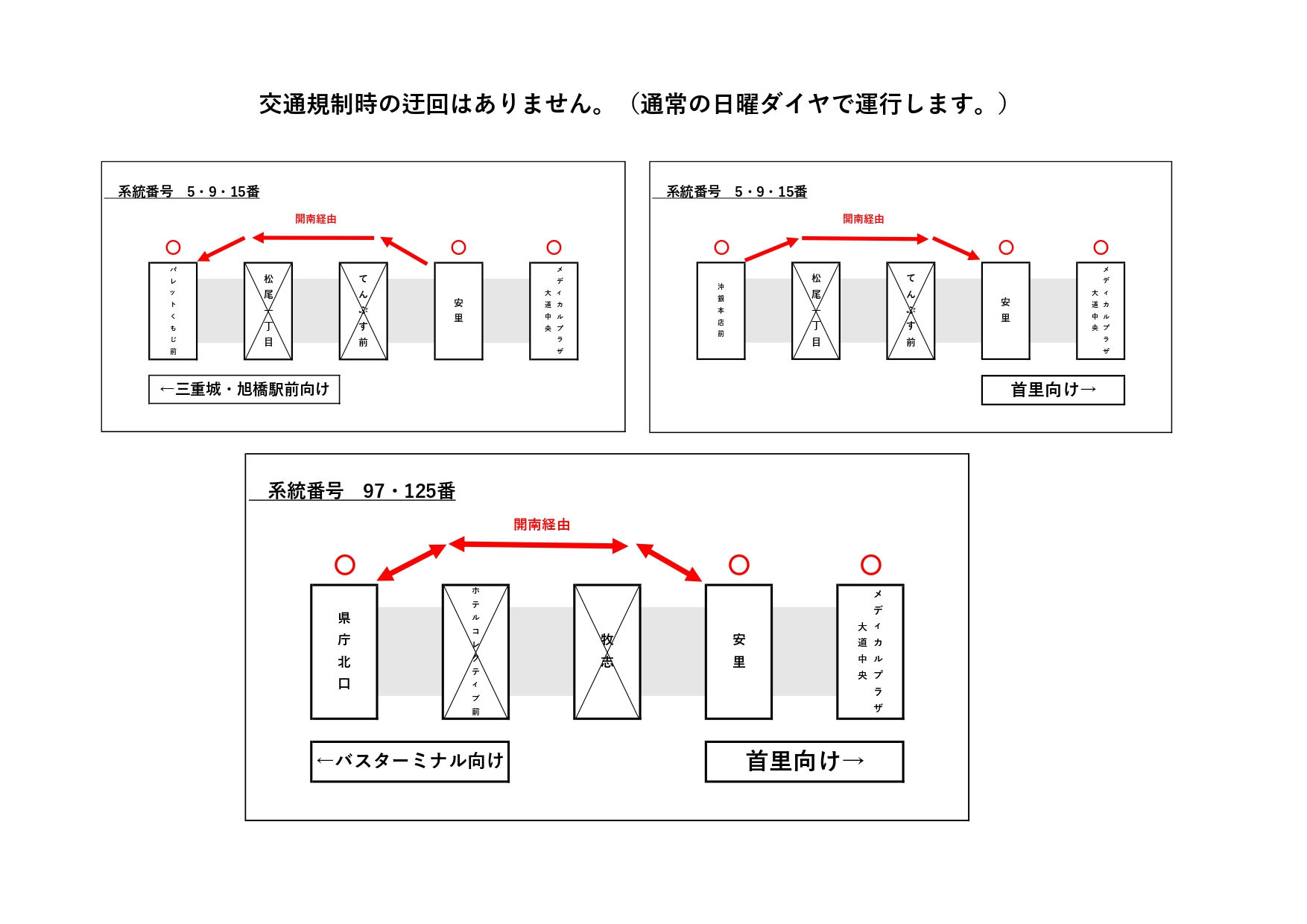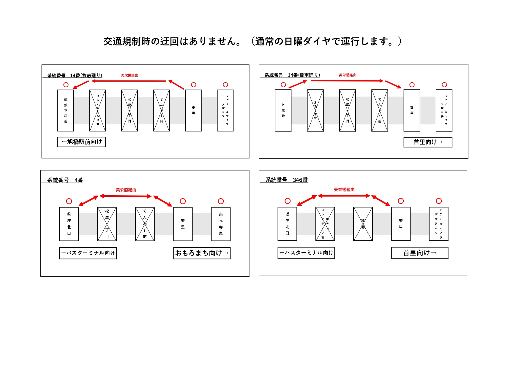 開催にあたり一部経路を変更して運行いたします。運行経路変更に伴い、ダイヤが乱れる恐れがございます。