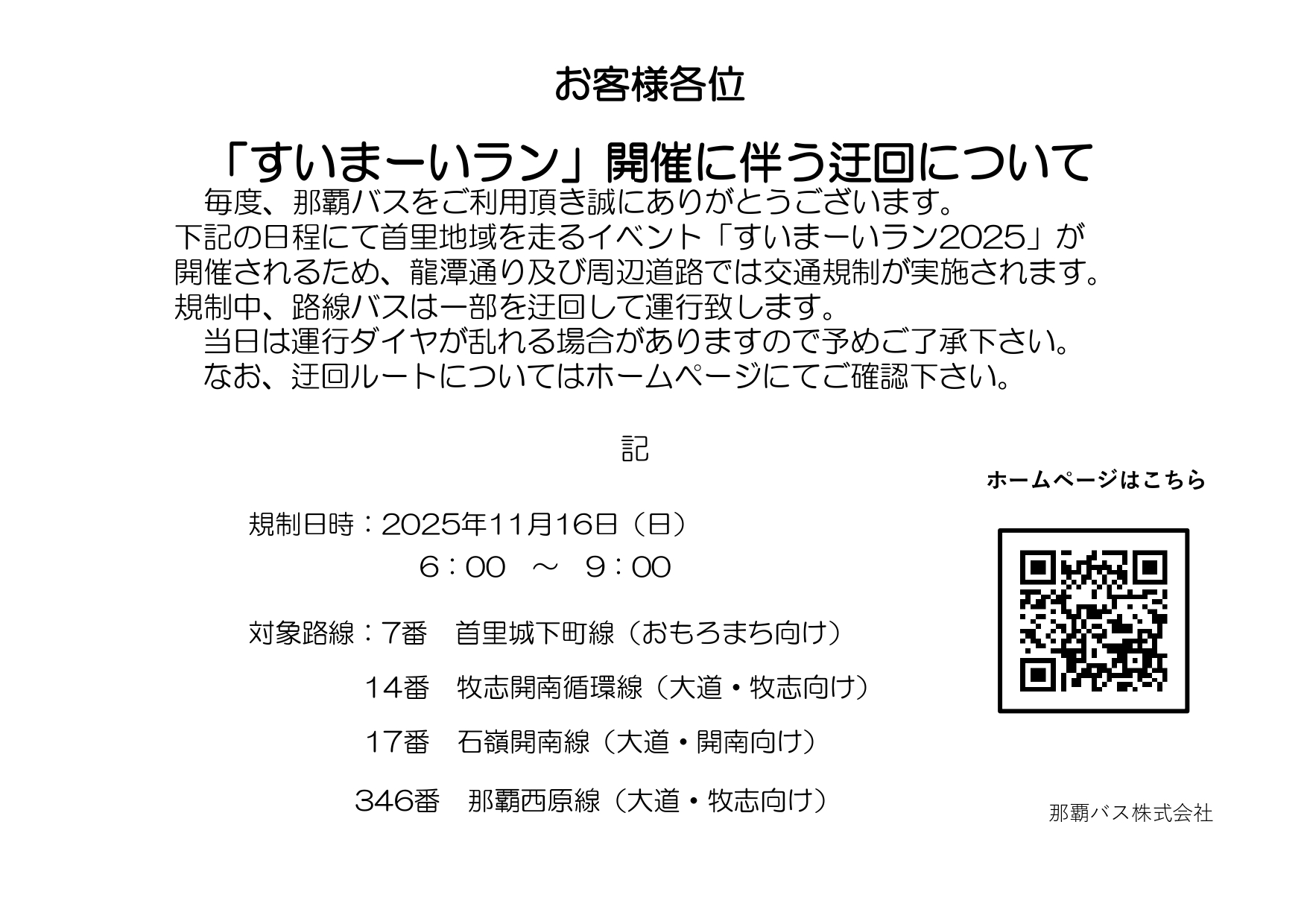 【那覇バス】11月16日(日)すいまーいラン2025に伴う迂回について