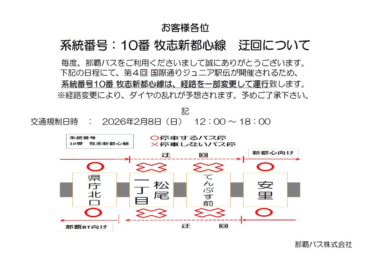 【10番 牧志新都心線】 2月8日(日)ジュニア駅伝開催に伴う迂回運行について