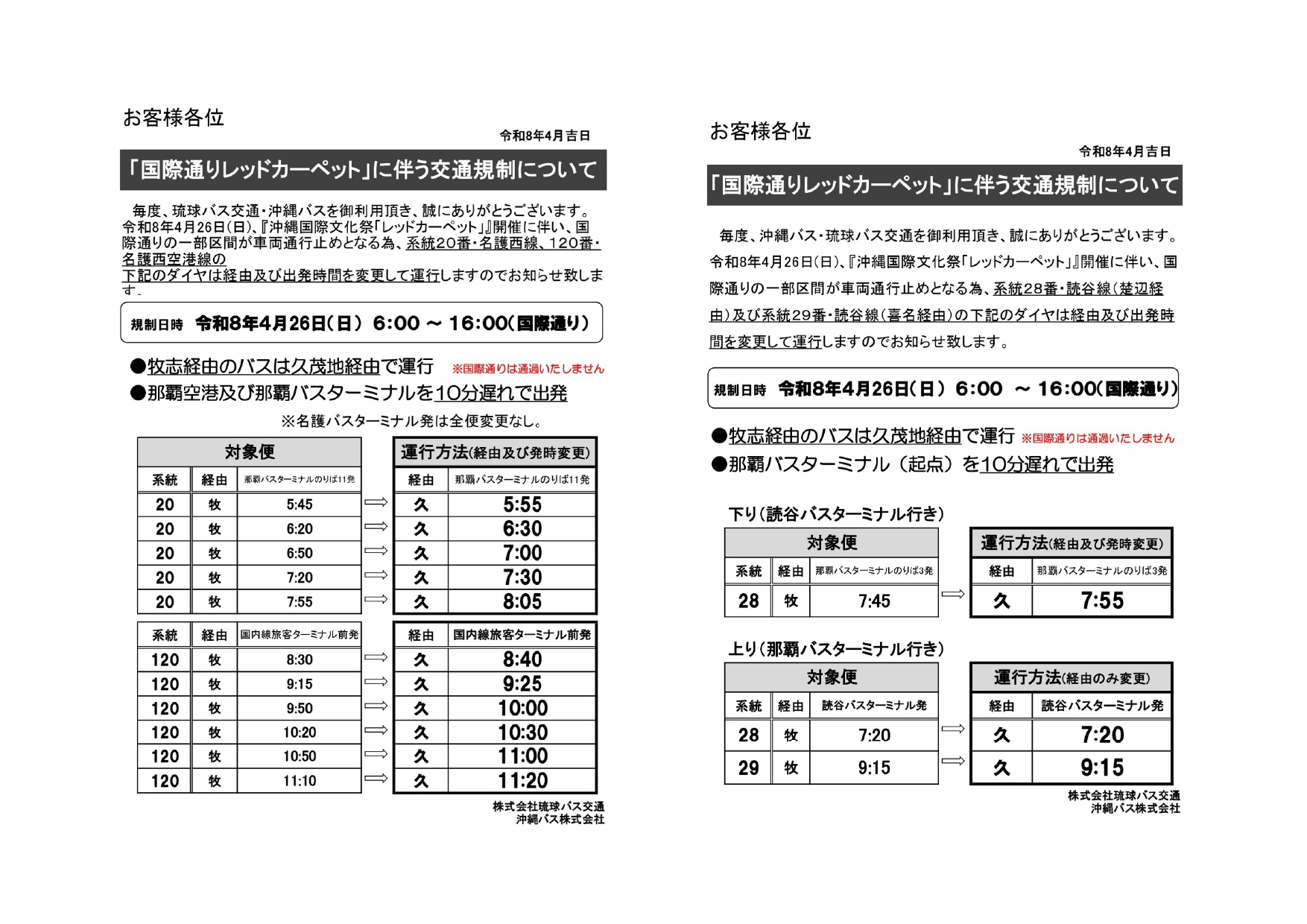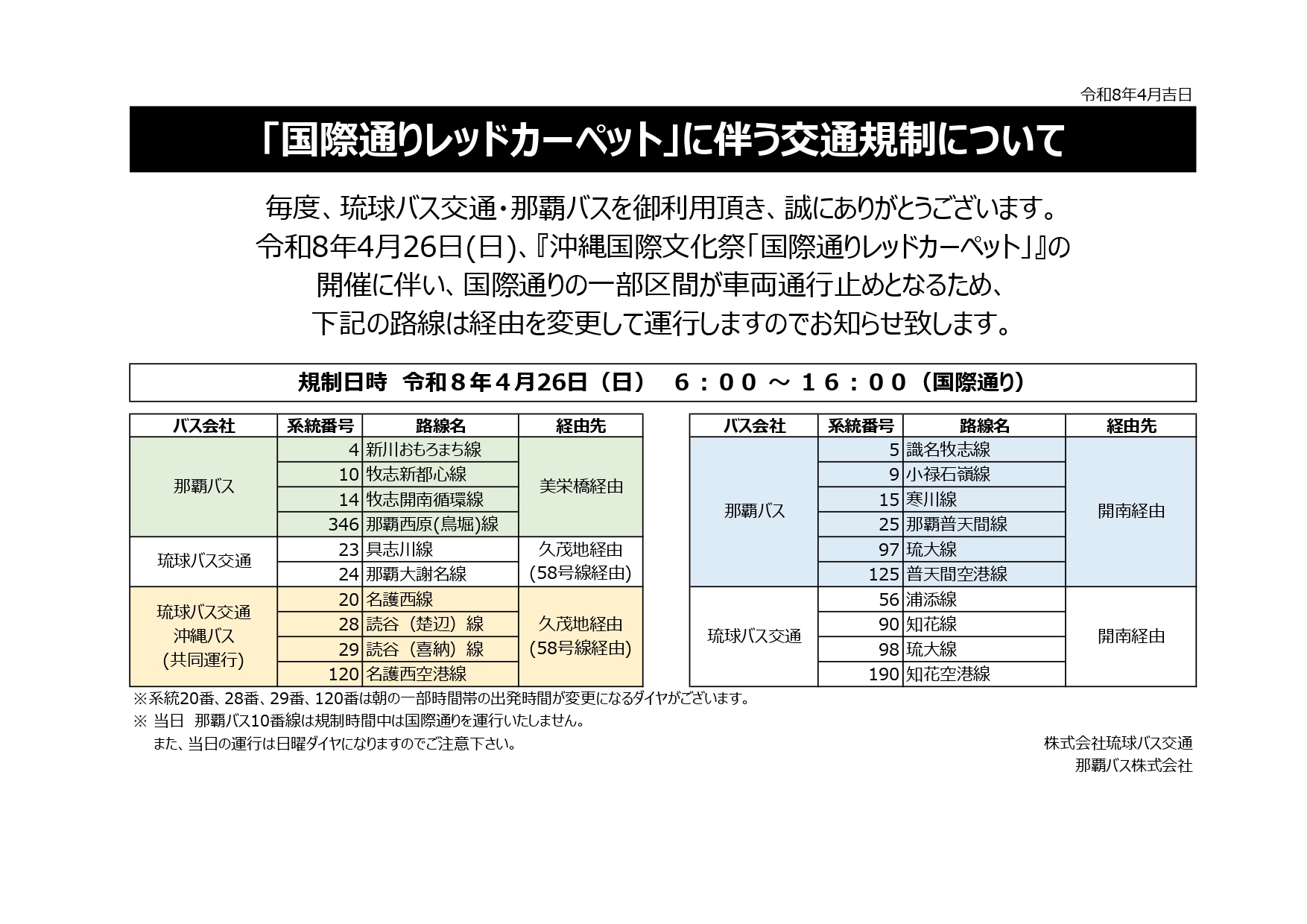 【4月26日】沖縄国際文化祭2026レッドカーペット実施に伴う運行方法について