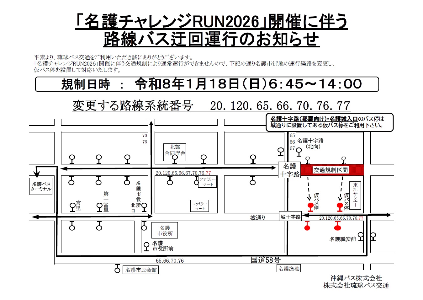 令和8年1月18日(日)『名護チャレンジRUN2026』開催に伴い交通規制が実施されます。